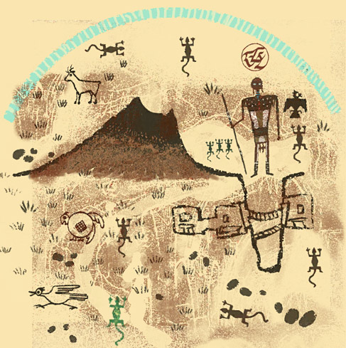 numerous depictions of desert wildlife, including a roadrunner (desert bird) in